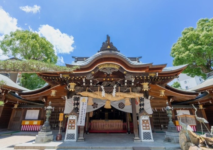 - 介紹: 這絕對是福岡的「心臟」所在!被親切地稱為「櫛田桑」(Kushida-san),擁有一千兩百年以上歷史,是博多祇園山笠祭的主神社,那份莊嚴與在地生活的緊密連結感,是你在別的神社不太容易感受到的。門口巨大的注連繩和一進門的巨大山笠(祭典花車)超級震撼!我個人特別喜歡它雖處鬧市,卻自有一方靜謐的獨特氛圍。