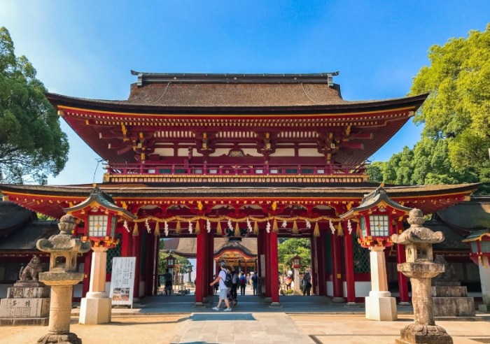 - 介紹: 如果時間允許且對日本歷史文化感興趣,太宰府是非常經典的半日遊選擇。它是日本全國一萬二千座天滿宮的總本社,供奉著學問之神「菅原道真」。地位崇高,香火鼎盛,尤其升學考試季節,祈求合格的學子絡繹不絕。參道上著名的「心」字池、莊嚴的社殿、千年古樹「飛梅」傳說、以及可愛的「御神牛」雕像都是看點。參道兩旁佈滿各種特色商店和梅枝餅名店。(真心話:人通常非常多!尤其週末假日,要有心理準備。梅枝餅現烤現吃真的很不錯。)