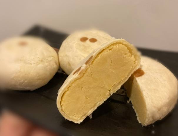 - 必買原因: 這個是我個人的私心推薦!常常被忽略,但超好吃!小小圓圓一個,外皮非常非常酥鬆,一碰就掉滿地渣那種(吃的時候記得用手接!)。內餡是鹹香的肉燥(有時會混一點綠豆沙?不確定,但很香!),鹹甜交織,味道豐富又涮嘴。配茶、當零嘴超級合適,不知不覺就吃掉半包。