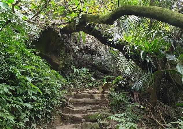 - 注意腳下: 步道以原始土徑、石階為主,部分路段樹根盤錯、石頭鬆動,務必看好腳下,特別是下山時。