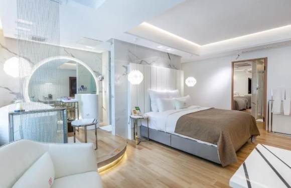 - 優點: 按摩浴缸是賣點,尺寸夠大,水療功能多,泡起來很舒服 (記得自備浴鹽更享受)。房間佈置用心,燈光、紗幔等營造氛圍佳。床鋪偏軟,喜歡軟床的人會愛。