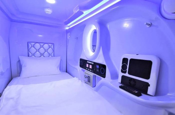 - 房型與價格: 膠囊床位 (男女分割槽) $820起。膠囊本身設計感強,有閱讀燈和小桌板。