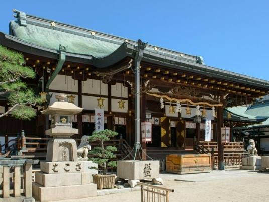 - 步行: 出站抬頭就能看到指標,直走不到 3分鐘 就能抵達神社西側入口(靠近神輿庫)。這是我最常用、最無腦的路線,尤其拉著行李或帶長輩時,省時省力。車站有電梯,對帶大件行李或嬰兒車的遊客很友善(關西地鐵不是每個站都有電梯,這點要注意!)。