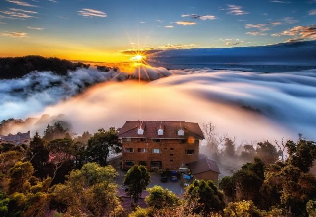 你們知道那種開啟窗戶,雲霧像會走路一樣飄進房間的感覺嗎?我跑了十幾年臺灣山線,住過無數景觀民宿,第一次在雲洞山莊碰到這種奇景時,整個傻住了!那天下午剛到,山區霧氣重得連車燈都得開著,心裡還嘀咕著:「完了,這趟該不會啥都看不到吧?」誰知道,傍晚一陣風吹過,雲霧突然像舞臺布幕般拉開,瞬間湧入屋內,眼前金黃色的夕陽把整片雲海染得像滾燙的熔岩,那一刻我才懂,為什麼它敢叫「雲洞」—— 真的就是在雲裡鑿了個洞讓人住啊!這份驚喜徹底收服了我這個挑剔的老旅人。
