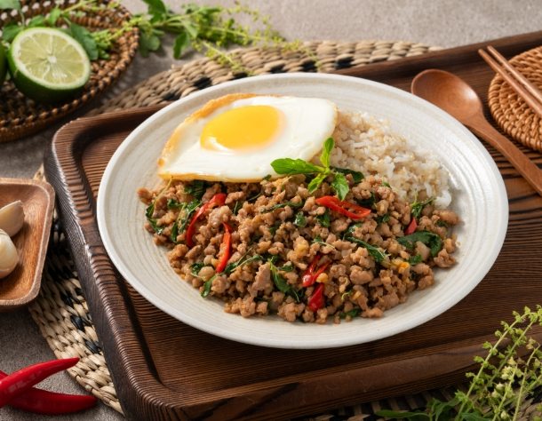 - 打拋豬、綠咖哩本身都帶辣度,可以請店家做「小辣」或「微辣」。