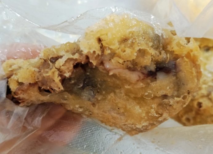推薦理由: 這家是我的私心愛店之一!專賣現點現做的烙餅。不同於一般的蔥油餅,打餅舖的餅皮是師傅手工桿製再放入鐵板烙烤,餅皮吃起來外層帶點酥脆,內層則是軟嫩有嚼勁,麵粉的香氣很足。我最愛點「起司蛋烙餅」,看著老闆熟練地打上雞蛋、鋪上滿滿的起司片,捲起來切成小段,起司融化在蛋香和餅皮之間,咬下去超滿足!份量也很紮實,當正餐或點心都很適合。價格比起其他小吃稍高一點點,但那份手工的溫度和口感,讓人覺得值得。算是一中街必吃名單裡比較有飽足感又特別的選擇。有時想換換口味不吃炸的,就會來這報到。
