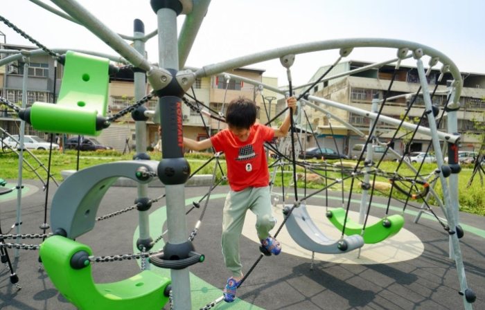 - 各式滑梯: 有適合小寶寶的小短滑梯,也有從攀爬網延伸出來的彎道滑梯(這個小胖滑了N遍)。