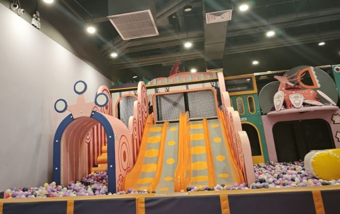 - 溜滑梯與球池: 在主建築的後方,有一個結合了攀爬網、溜滑梯和小型球池的綜合遊具。雖然規模不像大型親子館那樣驚人,但設計精巧,也非常適合學齡前到低年級的孩子放電。球池面積適中,大人也可以輕鬆在旁看顧。
