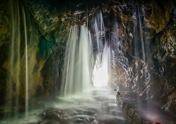 - 穿越黑暗,迎接水幕!: 走下小徑,就會抵達最後一個短隧道口。這個隧道很短,幾乎可以看到另一頭的光(和水氣!)。但一樣黑,請開頭燈。快速透過這個短短的隧道...