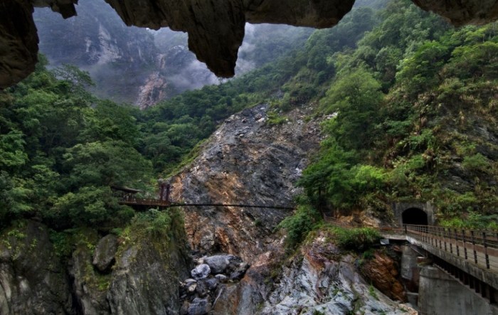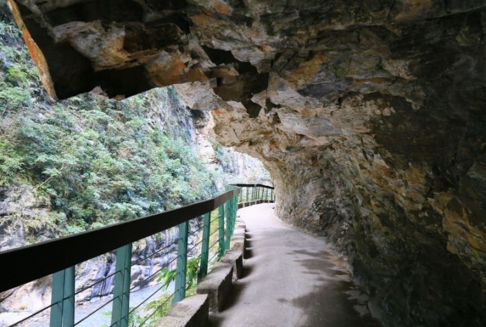 - 壯麗峽谷景觀: 穿梭隧道之間,步道常常緊貼著高聳的懸崖峭壁。抬頭看,是幾乎垂直的巖壁,佈滿了綠色的植物,生機勃勃;低頭看,是深邃翠綠的溪谷,水流湍急,氣勢磅礴。太魯閣峽谷的壯麗,在這裡展現得淋漓盡致。好幾個轉彎處都是拍照打卡的熱點。