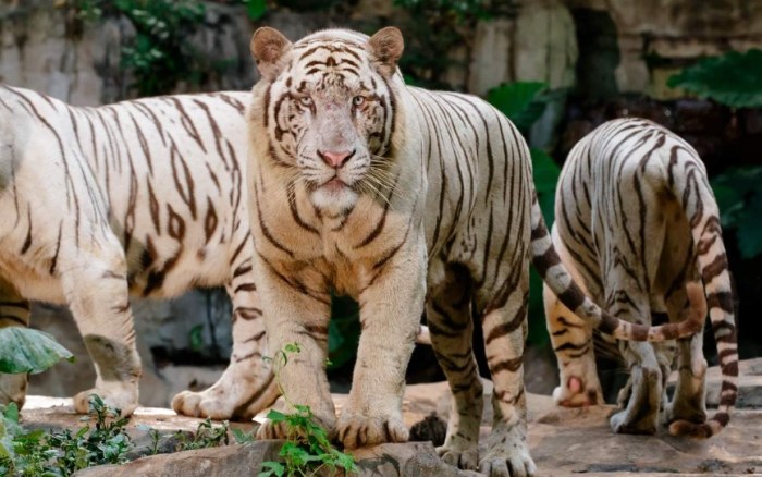 - 白虎軍團: 長隆飼養繁育白虎非常成功。「百虎山」裡有不同年齡段的白虎、東北虎、華南虎等。白虎跳水錶演的主角當然也是它們。白色的皮毛、藍色的眼睛,確實漂亮又威風。