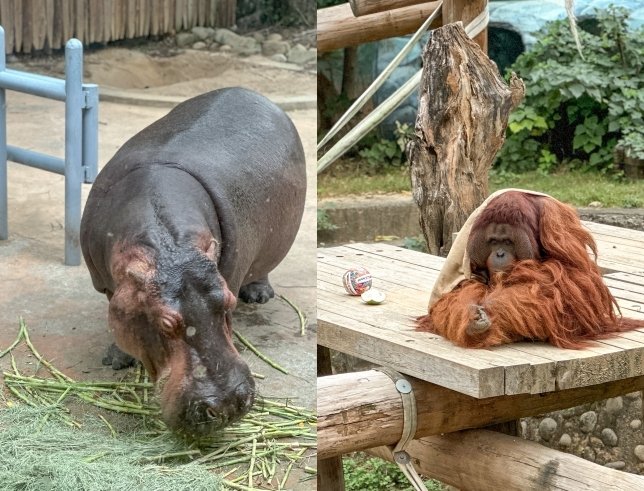 - 河馬「樂樂」: 巨大的河馬泡在水池裡,常常只露出小小的耳朵、眼睛和鼻孔在水面上換氣,光是這個畫面就充滿趣味。幸運的話能看到牠上岸活動或張開大嘴(真的很壯觀!)。