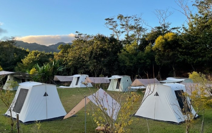 - 價位: 自搭帳營位假日大約 $1000 - $1500/帳 (4人)。租用他們的神殿帳價格會高不少,約 $4000 - $6000/帳 (4人),通常包含溫泉使用。純泡湯也有對外開放的價目表。
