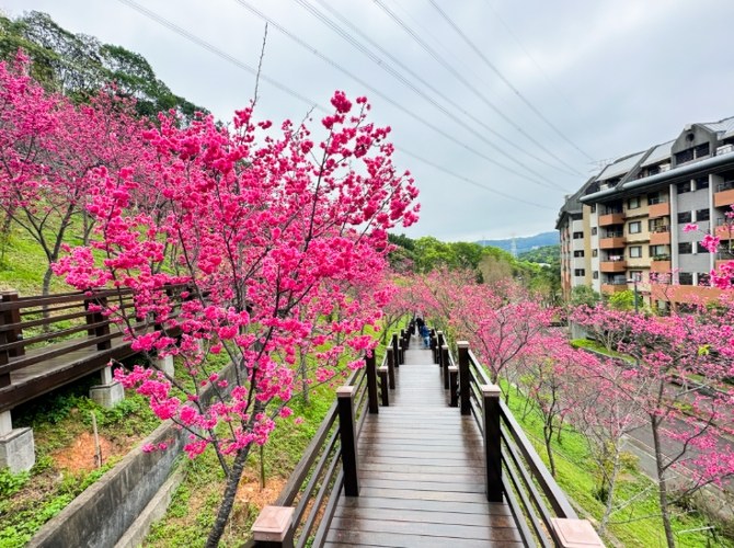 講到臺北賞櫻,平菁街絕對是首選!這條路名號響亮不是沒道理。最有名的就是「櫻花巷」那段,居民悉心栽種的寒櫻沿著坡道熱鬧盛開。走在這裡,抬頭是滿滿的粉紅花海,低頭是古樸的農家院落,濃濃的鄉村風情。記得帶杯咖啡上山,在花樹下小坐,聽著蟲鳴鳥叫,這才叫生活!不過假日人真的爆炸多,想拍空景?拜託請早點出門或平日來,否則照片裡全是人頭啦!
