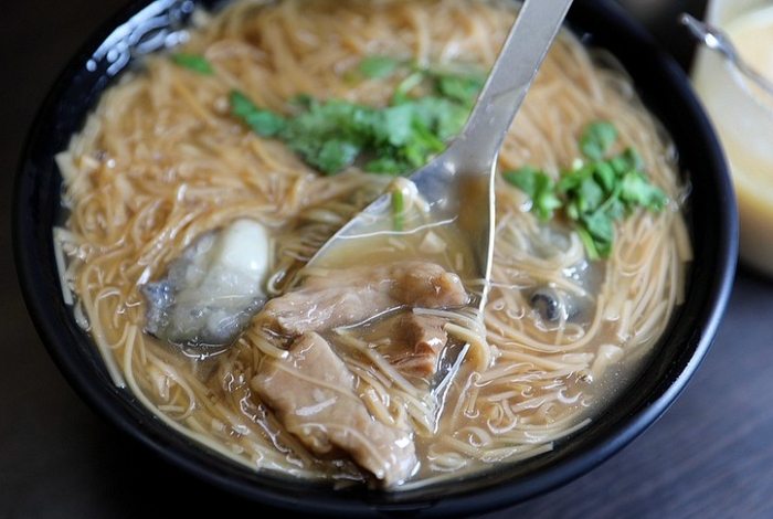 • 油庫口麵線(板橋): 雖然在板橋,但名氣響亮到臺北人都知道。特色是配香腸吃!麵線本身也不錯,口味偏甜一點點(看個人喜好)。蚵仔新鮮。