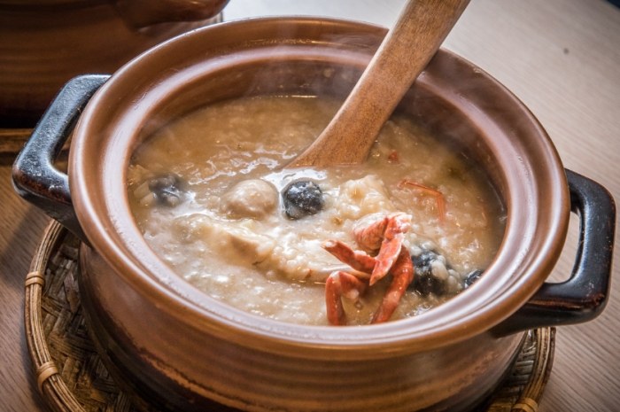 - 挖一勺起來,看那濃稠度!蝦紅的油脂、雪白的幹貝、橙紅的蟹肉、飽滿的蛤蜊,全在綿滑的粥裡載浮載沉。吃的時候先吸一口蟹殼裡的湯汁,鮮!甜!濃!鬱!蝦肉的彈、幹貝的嫩、蛤蜊的飽滿、蟹肉的鮮甜,配上吸飽海鮮精華的粥底,每一口都是高潮迭起。這款粥我通常會配點腐乳或豆棗,傳統臺式吃法,解膩又提味。