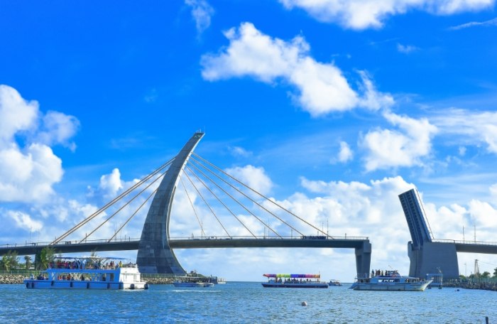 - 開車或騎車直接到跨海大橋旁邊的停車場(祈禱有位子!)。走上橋拍拍照,感受一下海風(風超大,帽子要抓好)。如果時間剛好(通常是週六、日及國定假日下午4點30分),可以看一下開橋秀。然後去旁邊的遊客中心吹冷氣(很重要!)、上廁所、拿些導覽資料,順便了解一下大鵬灣的故事。