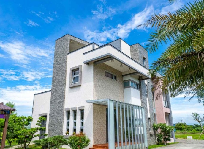 - 介紹: 田中間的純白建築,簡約現代。房間大片落地窗採光好,看出去就是綠油油的田。公共空間寬敞舒適。有電梯。老闆親切。