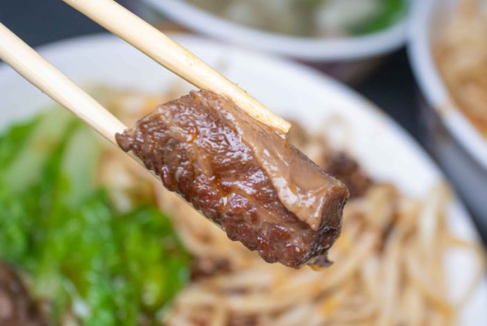 這間躲在巷子裡的老店,湯頭我真是一喝就上癮。他們家湯是用牛大骨跟大量蔬果慢慢熬的,喝起來超濃鬱但完全不油膩,還帶點蔬菜的鮮甜。牛肉更是誇張,用的是臺灣本地牛腱心,燉得超級軟爛,筷子一夾就散開,根本不用咬!老闆娘每天現炒的辣油絕對要試試,香得要命但不會死辣,加進湯裡整個香氣翻倍。不過要注意,他們生意好到誇張,想吃真的要趁早,我有次睡過頭中午才到就已經在收攤了,超殘念!