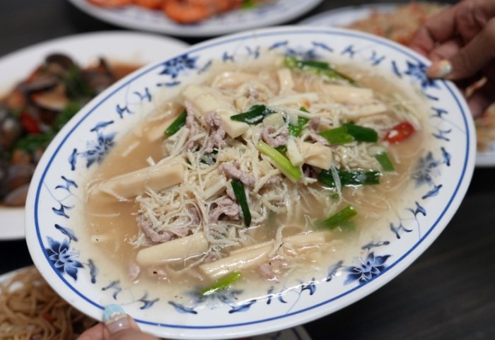 • 小管麵線: 湯頭是用小管熬煮的,超級鮮甜!裡面放滿整尾小管,麵線吸飽湯汁,簡單卻讓人回味無窮。絕對是澎湖熱炒的清流代表。