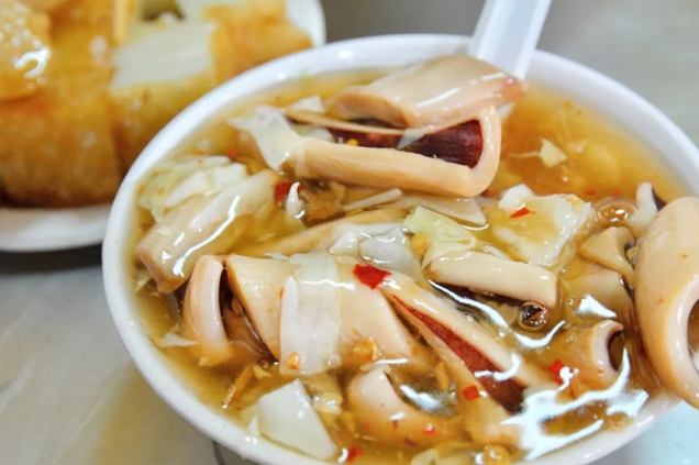介紹: 喜歡吃羹類的朋友看這邊!老闆炒功了得,點完後現場大火快炒魷魚、洋蔥等配料,香氣瞬間爆發!勾芡不會過於濃稠 (這點很重要!),湯頭是 沙茶混合醋的酸甜鹹香 風味,非常開胃。魷魚給得不少,口感 脆彈有嚼勁 ,不是泡發過頭軟爛的那種。可以選 羹麵、羹米粉或純羹。我每次都點羹麵,麵條吸飽湯汁超入味。