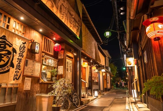 - 介紹: 鴨川西岸,與三條大橋垂直的一條狹長石板路花街。保留著濃厚的江戶風情,兩側是木造町家建築,入夜後掛起燈籠,氣氛迷人。這裡聚集了許多高階料亭、居酒屋、酒吧和茶屋,是體驗京都夜生活(特別是懷石料理或宴席料理)的高階場所。白天去逛逛感受氛圍也不錯(但許多店白天不開)。