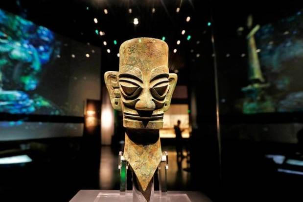 - 戴金面罩青銅人頭像:這些戴著金面罩的「大佬」們,神情肅穆威嚴。金面罩不是整個臉蓋住,而是貼在額頭、眼睛、耳朵等重要位置(宗教意義濃厚?)。看著他們空洞的眼睛(原本可能鑲嵌寶石或玉石),有種被遠古凝視的感覺,有點發毛又忍不住一直看。位置:新館二樓青銅人像展區。