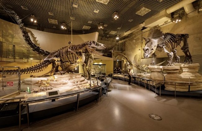 - 生命演化廳: 各種古生物的化石、模型,講述生命從海洋到陸地的故事。恐龍骨架(除了門口的機械暴龍)也在這裡!看到巨大的長頸龍(雷龍)骨架矗立在眼前,會讓人忍不住“哇”出來。