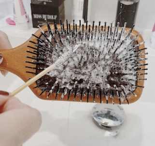 - 泡澡去油垢: 洗臉盆裝溫水(別用熱水,塑膠會變形!),擠入大約10元硬幣大小的洗碗精,攪拌均勻。把梳子浸泡15-20分鐘,讓油垢軟化。