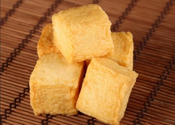 - 偽酥皮濃湯丁: 把 魚豆腐 切超小丁,炸得酥酥的。喝玉米濃湯、南瓜濃湯時,替代麵包丁撒上去,增加口感,又有豐富蛋白質!