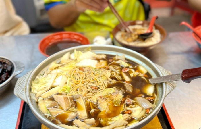 - 搭配建議: 經典搭配是燒肉或紅燒肉! 旁邊就有老字號燒肉攤,現炸的紅燒肉外皮酥脆卡滋作響,肥瘦比例恰好,浸一點粥湯再入口,絕配!也可以點一份油豆腐或滷蛋。