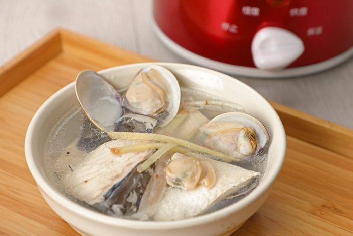 - 蛤蜊增鮮:時間到,轉中大火讓湯滾起來,倒入吐好沙的蛤蜊。蛤蜊一開口就立刻關火!(煮久了肉會縮成橡皮筋)