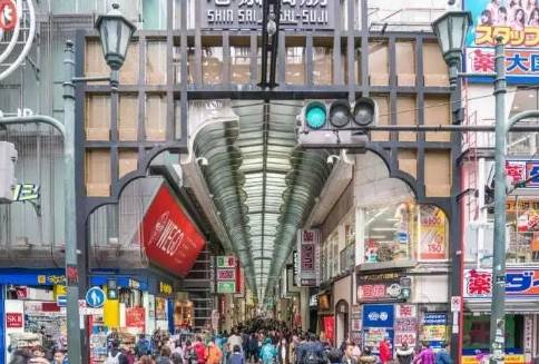 類似心齋橋、道頓堀,商店約 10:00 - 20:00/21:00,餐廳、居酒屋、商場可能到更晚,唐吉軻德是24小時營業。