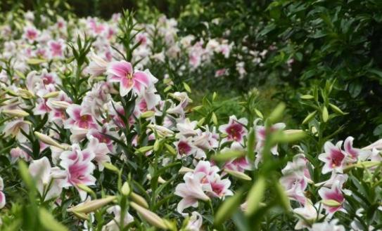 - 春天: 各種顏色的陸蓮、鬱金香、洋桔梗、飛燕草、小蒼蘭、金魚草是主角。顏色粉嫩夢幻。
