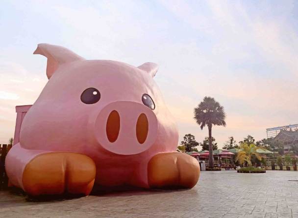 這地方名字超可愛,讓人一聽就印象深刻對吧!它在我心中絕對是嘉義遊樂園的代表作之一。整個農場佈置就像一個大型的童話故事書場景,到處都是經典童話《三隻小豬》的元素:稻草屋、木頭屋、磚頭屋通通有!不只是裝飾而已,小朋友可以在裡面鑽來鑽去,真的好玩。
