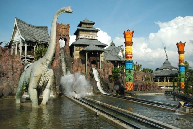 2. 南太平洋: 充滿熱帶海洋風情,主打水上設施(但非水上樂園,是類似泛舟、滑水道)。經典設施是「火山歷險」雙重俯衝的水道船。