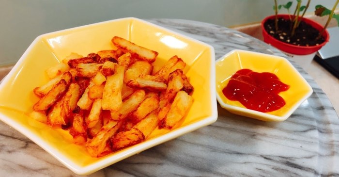 - 狀態: 薯條邊緣會變得有點透明感,整體是軟的、淡黃白色。拿起來有點韌性,不會輕易斷掉。