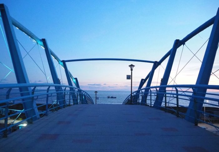 - 藍色公路候船室 & 海上夕陽: 在漁港的一側,有個藍色公路的候船室。雖然目前從枋寮漁港出發的固定觀光航線不算多(主要是季節性或包船),但這個區域視野超棒!特別是傍晚時分,坐在堤防邊,看著夕陽把海面、漁船和天空染成一片金黃橘紅,美得讓人屏息。這是我認為枋寮漁港最浪漫的時刻,完全免費的頂級享受!(小聲說:比很多收費觀景臺還漂亮!)