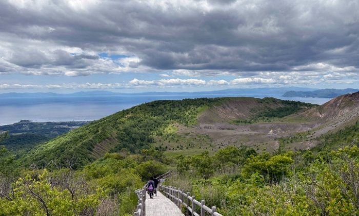 - 金比羅火口: 2000年噴發形成的巨大火山口,近距離看超震撼!那種撲面而來的硫磺味(雖然淡了)和寸草不生的焦黑巖壁,活生生感受到地球的脈動。觀景臺設有詳細解說牌。