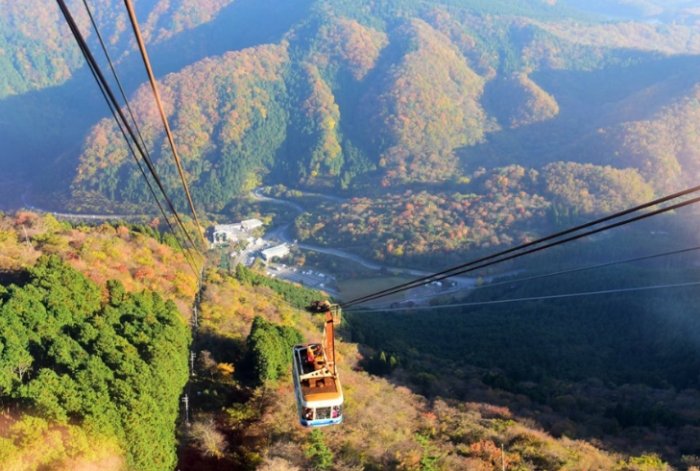 終於要搭上纜車啦!近鐵別府空中纜車使用的是大型纜車車廂,一車大概可以容納 20-30人 左右。進去後大家會自然地往窗邊靠攏,畢竟景色才是重點嘛。