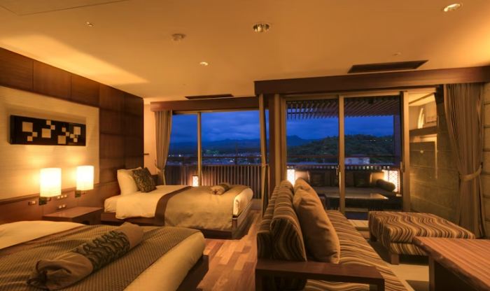 • 介紹: 這家位置最無敵! 它就緊鄰著御船山樂園,部分房間甚至擁有直接面向樂園的私人景觀(想想看,在房間陽臺就能欣賞樂園點燈!)。酒店本身歷史悠久,充滿和風韻味,擁有自家的溫泉浴場(泉質為單純溫泉),晚餐的會席料理評價也不錯。非常適合想深度體驗樂園日夜之美,追求便利和景觀的旅客。缺點嘛... 價格通常是區域內最高的,而且房間設施相對傳統(較舊式),未必符合喜歡新潮裝置的年輕人胃口。