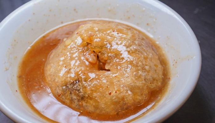 • 介紹: 這家肉圓在彰化也很出名,主打的是「乾炸」做法。跟楊家那種蒸過再泡醬汁的濕軟Q皮不同,阿三是直接把生的肉圓放進油鍋裡炸到熟透。這樣炸出來的外皮,口感更為酥脆硬挺,甚至帶著一點點焦香脆邊,很像餅乾的口感!裡面的肉塊很大塊,用料實在。醬料一樣是白醬和米醬。喜歡酥脆口感的人會很愛,但我個人覺得吃起來油感比蒸的明顯一點點(畢竟整顆炸透),而且皮比較厚實,飽足感很夠。這也是水南市場周邊的排隊名店之一。
