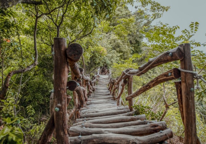 絕對不適合平常沒在運動、膝蓋不好或年紀太小的小朋友。上次看到一個大學生穿拖鞋想挑戰,結果在濕滑木梯上滑跤扭到腳踝,被朋友狼狼狽扶下山...何必呢?