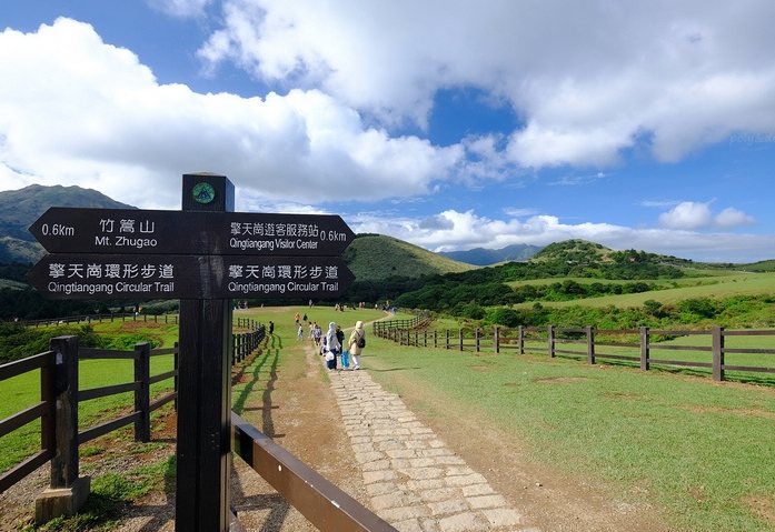 - 步行時間: 如果你走最經典的 擎天崗環狀步道一圈(從遊客中心出發,走環型步道接金包裡大路繞回),距離大約 2.4公里。以邊走邊拍照、悠閒看牛的節奏,抓個 1小時到1.5小時 是很充裕的。腳程快、不停留的人大概40分鐘能走完。當然,你也可以選擇只走一小段,到草原中央看看牛就折返,時間更彈性。我個人喜歡完整的環一圈,風景角度不同。