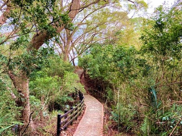 A: 可以!但建議只走前面1公里精華段(到相思樹林休息點即可折返),避免後段濕滑下坡增加風險。全程牽好孩子,注意樹根絆腳。