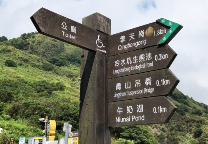 - 路線(範例一):冷水坑服務站 → (看牛奶湖) → 菁山吊橋 → 冷擎步道 → 擎天崗 → 擎天崗環形步道(繞草原一圈) → 走「擎天崗環形步道東側」或「頂山-石梯嶺步道」一小段 → 風櫃嘴或竹篙山南峰方向岔路轉「絹絲瀑布步道」 → 絹絲瀑布 → 冷水坑 (路線較長較複雜,需研究地圖或APP)