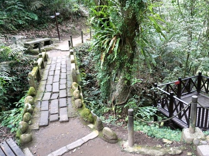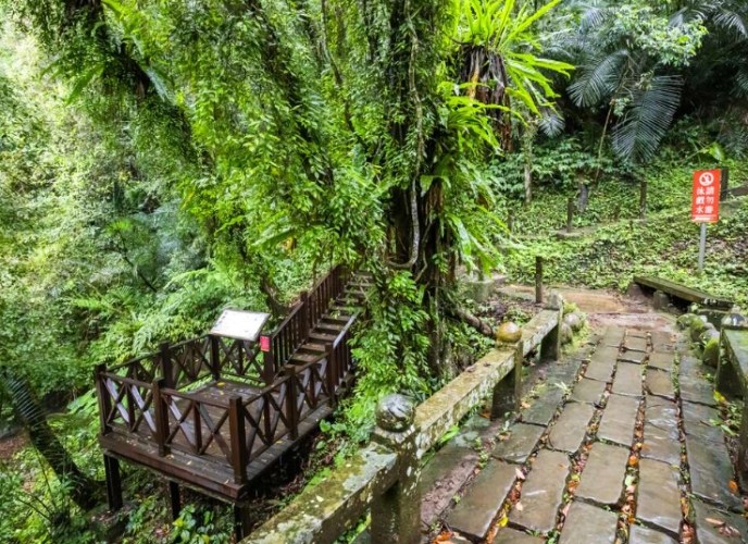 - 陡降溪谷: 小心濕滑石階,約5-10分鐘下到溪邊步道。