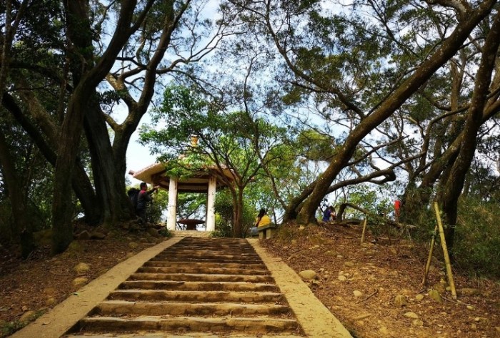 - 續行至觀日亭: 離開雲洞仙家,繼續沿著主要步道指標往上走(大部分是石階搭配山徑)。大約再15-20分鐘,就會看到 觀日亭 了!恭喜登頂!這裡有幾張石椅可以坐,看看風景(雖然樹有點高了...),吃點行動糧補充體力。