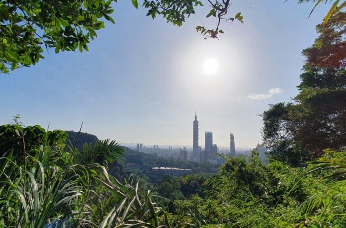 這段坡度明顯增加,但多數是花崗岩階梯,穩定性高,走起來腳感很紮實(不像有些土徑下雨後會變泥沼)。階梯高度算適中,我這種平常有在快走的人,大概15分鐘就開始微喘流汗了。途中好幾處展望點能俯瞰101和信義區密密麻麻的高樓,城市天際線與腳下的綠意反差超大!