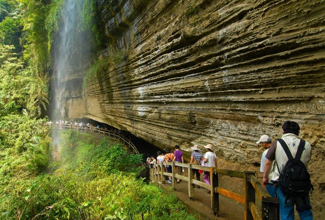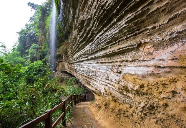 - 青年嶺步道(燕子崖&千年蝙蝠洞): 這條絕對是瑞裡風景區的「硬派代表」!入口處的「好漢坡」陡下階梯(回程就是陡上)就先給你個下馬威。但咬牙撐過去,壯觀的燕子崖就在眼前——巨大巖壁內凹形成的走廊,布滿整齊的管狀洞穴(那是昔日洋燕築巢的痕跡,現在比較少見了),雨季時還有水簾潺潺流下,超有武俠片場景的FU!再往前一點就是千年蝙蝠洞,整片山壁被侵蝕成蜂窩狀,雖然現在蝙蝠數量不多(生態改變了),但地質景觀本身就夠震撼。說實話,這條步道走完真的會小喘,膝蓋也要顧一下,但那份親臨自然奇觀的感動,值回票價!(上次帶平常只逛百貨的朋友來,走到她哀哀叫,但看到燕子崖時,她手機拍個不停,完全忘了累...)